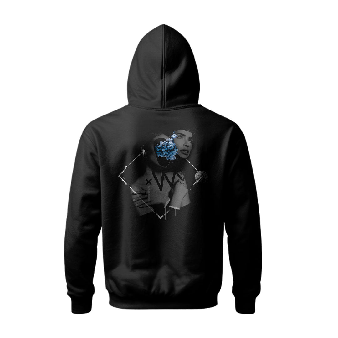 A pullover hoodie crafted from a fine, soft and sturdy blend of cotton and recycled polyester. It features a relaxed silhouette with dropped shoulders, a kangaroo pocket, self fabric lined darted hood, featuring an urban, elevated look. High quality cuffs and bottom hem in 1x1 rib.